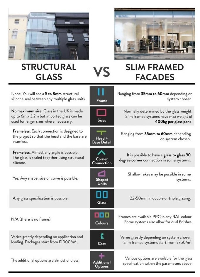 Structural Glass and Slim Framed Facade
